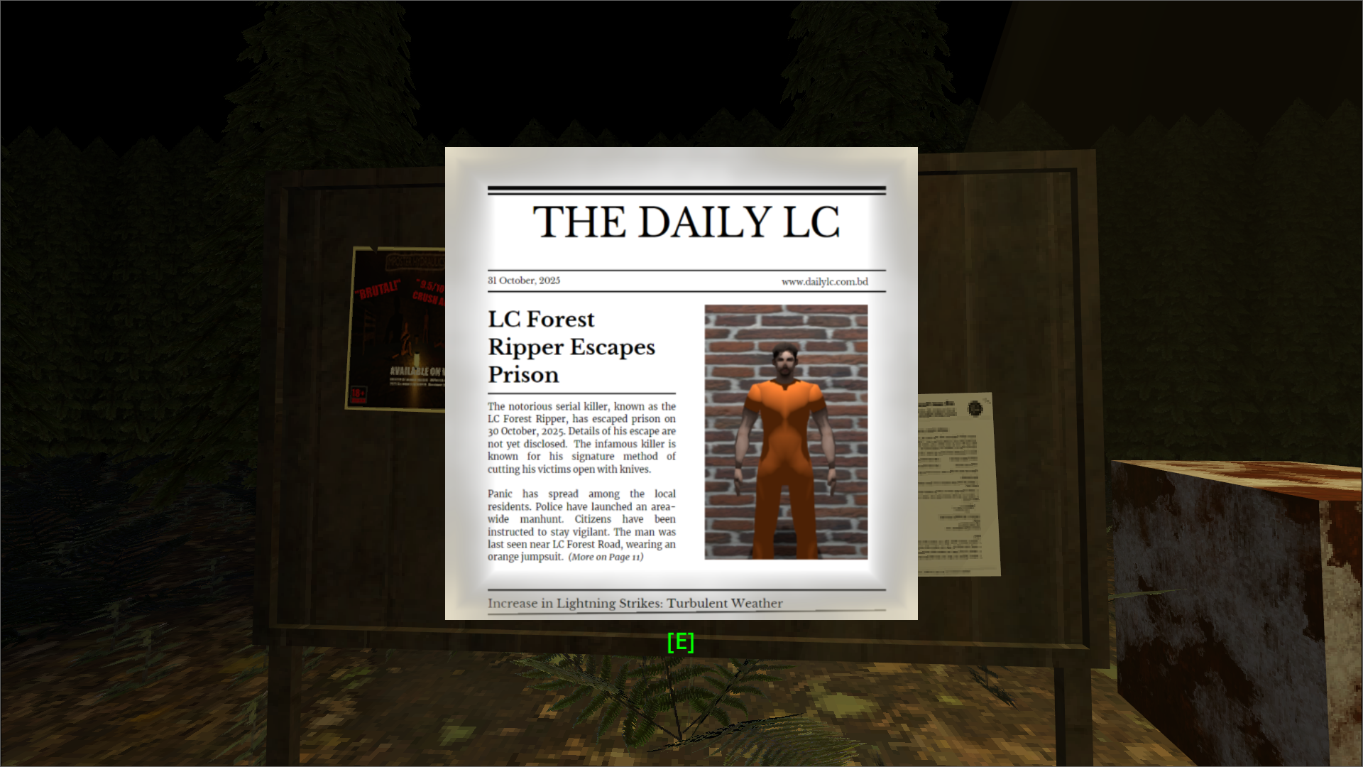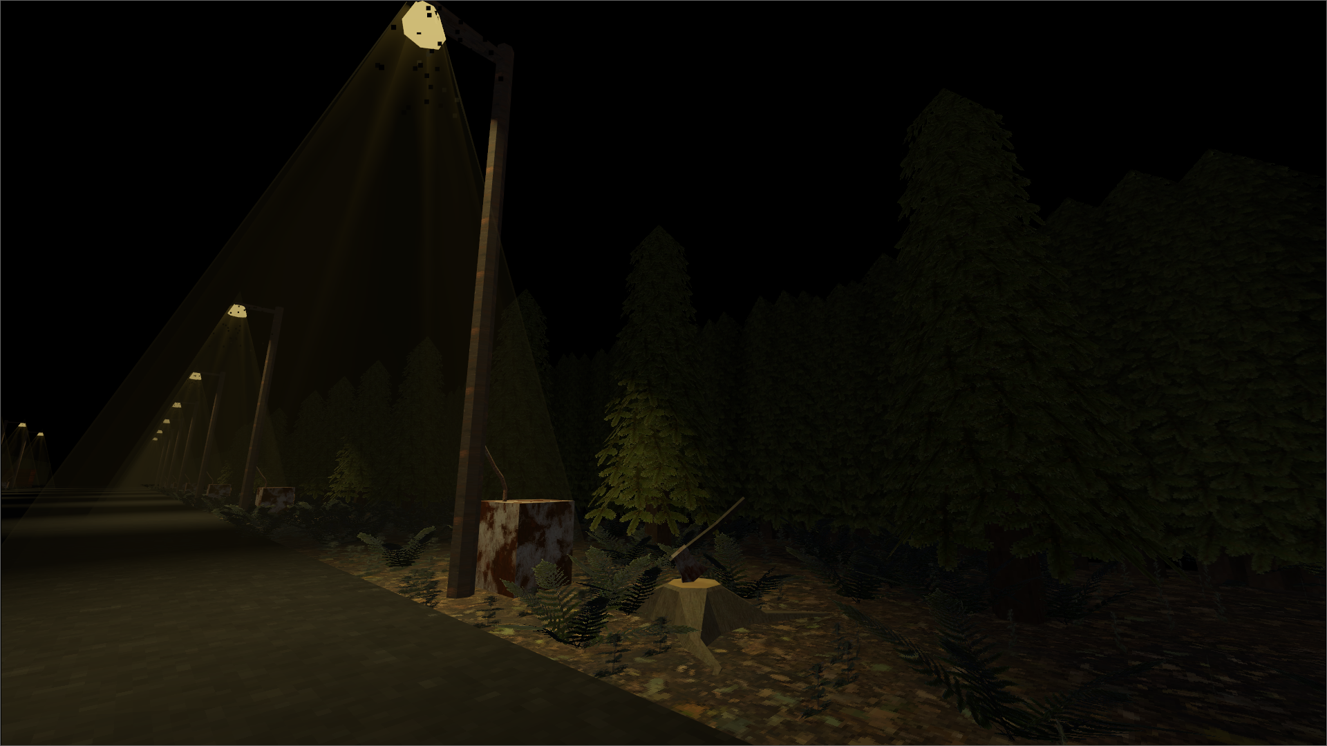 You are in a cold, October night in a remote forest. Your goal: fix the flickering lamp posts and then go home & enjoy a hot meal and watch TV. Easy, right? But you soon realize, you are not alone in here...